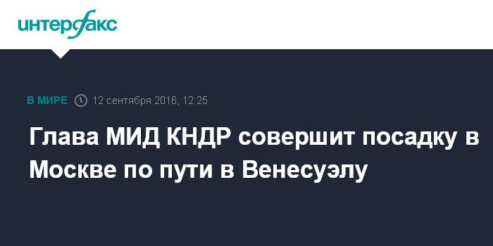 "Министр иностранных дел Северной Кореи в настоящий момент находится в Пекине, откуда в ближайшее время вылетит в Москву, чтобы совершить пересадку для продолжения пути в Венесуэлу на встречу представителей стран Движения неприсоединения", - сказали "Интерфаксу" в посольстве Северной Кореи в Москве.