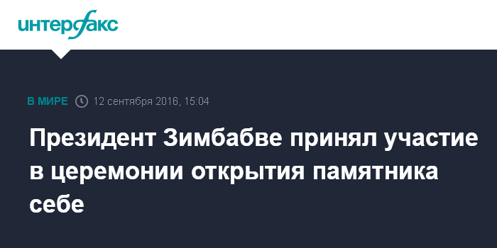 Президент Зимбабве принял участие в церемонии открытия памятника себе