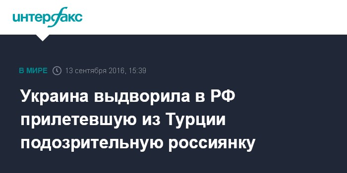 Москва. 13 сентября. INTERFAX.RU - Служба безопасности Украины принудительно отправила на родину гражданку РФ, которая может быть причастна к деятельности международной террористической организации "Исламское государство" (запрещена в России - ИФ).