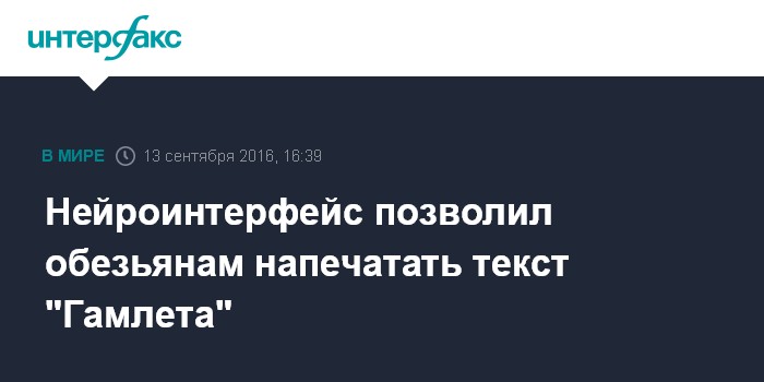 Нейроинтерфейс позволил обезьянам напечатать текст "Гамлета"
