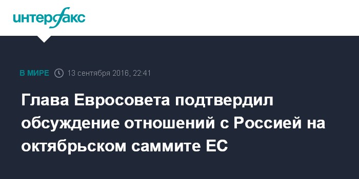 Глава Евросовета подтвердил обсуждение отношений с Россией на октябрьском саммите ЕС