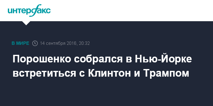 "18-21 сентября президент Украины осуществит визит в Соединенные Штаты, где выступит на Генассамблее ООН и в Совете Безопасности ООН, и проведет ряд двусторонних встреч с лидерами ключевых государств. Также запланированы переговоры с обоими кандидатами в президенты США. На сегодня подтверждена встреча с Хиллари Клинтон", - сообщил пресс-секретарь президента Святослав Цеголко.