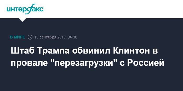 Штаб Трампа обвинил Клинтон в провале "перезагрузки" с Россией