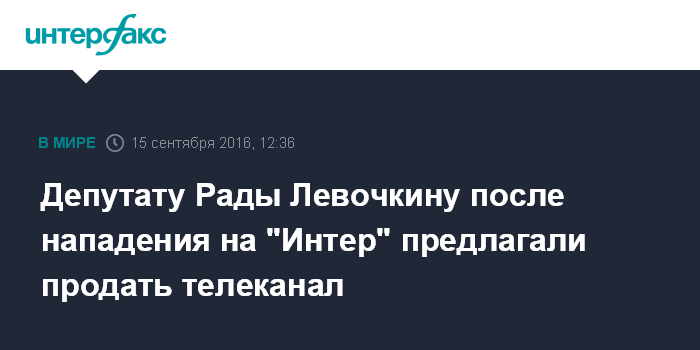 Москва. 15 сентября. INTERFAX.RU - Депутат фракции "Оппозиционный блок" в украинской Раде Сергей Левочкин заявляет, что получал предложения о продаже телеканала "Интер".