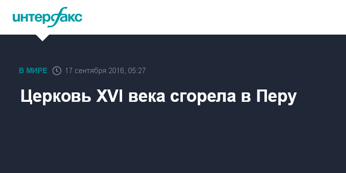 Москва. 17 сентября. INTERFAX.RU - Пожар уничтожил знаменитую барочную церковь Сан-Себастьян в перуанском городе Куско, сообщает BBC.