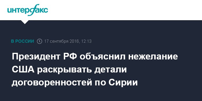 Президент РФ объяснил нежелание США раскрывать детали договоренностей по Сирии