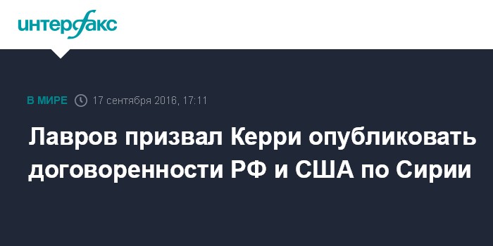 "Российский министр в очередной раз настоятельно предложил опубликовать российско-американские договоренности по сирийскому урегулированию, чтобы устранить любые двусмысленности в восприятии международным сообществом реального положения дел с их исполнением", - подчеркивается в сообщении внешнеполитического ведомства.