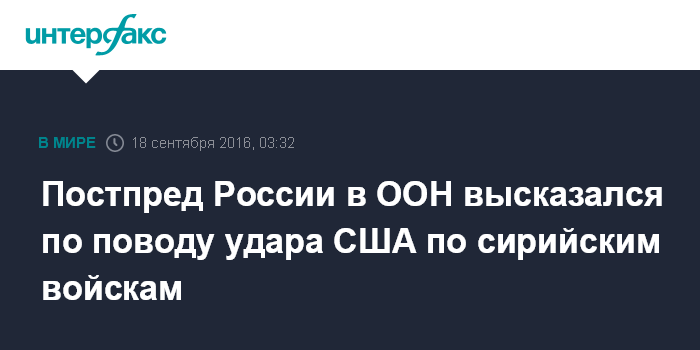 Постпред России в ООН высказался по поводу удара США по сирийским войскам