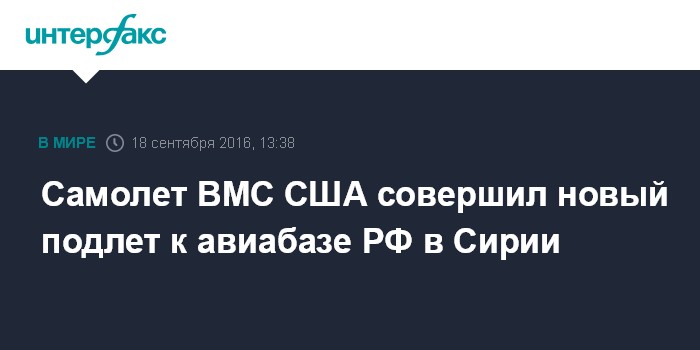 Москва. 18 сентября. INTERFAX.RU - Патрульный противолодочный самолет ВМС США P-8A Poseidon в воскресенье совершил очередной, уже четвертый за неделю подлет к российской авиабазе Хмеймим в Сирии, а также пункту материально-технического обеспечения ВМФ России в сирийском порту Тартус, свидетельствуют данные западных сайтов, отслеживающих передвижения военной авиации.