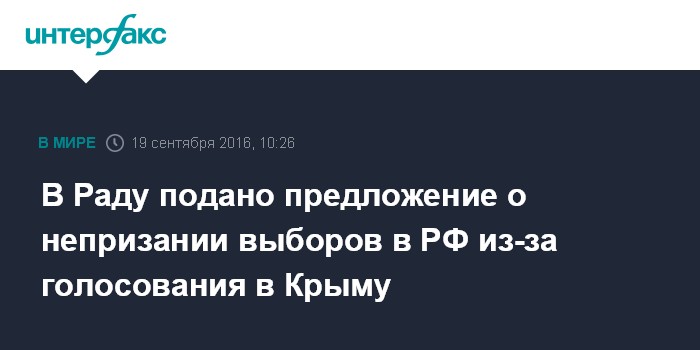 Москва. 19 сентября. INTERFAX.RU - Фракция "Народный фронт" зарегистрировала в Верховной раде Украины проект постановления о признании выборов в российскую Госдуму нелегитимными из-за проведения голосования в Крыму.