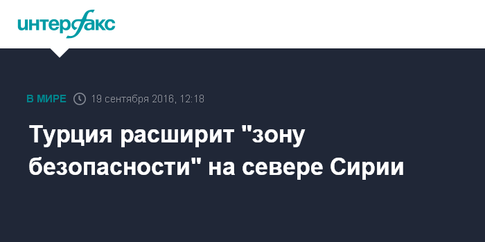 Москва. 19 сентября. INTERFAX.RU - Силы, принимающие участие в операции "Щит Евфрата" в Сирии могут расширить вдоль границы с Турцией зону безопасности, свободную от террористов, сообщает Bloomberg со ссылкой на заявление президента Турции Реджепа Тайипа Эрдогана.