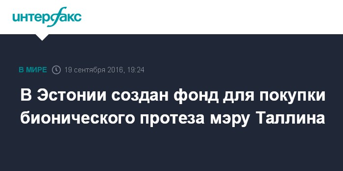 Москва. 19 сентября. INTERFAX.RU - В Эстонии создано недоходное объединение, при помощи которого планируется собрать деньги для покупки бионического протеза мэру Таллина Эдгару Сависаару.