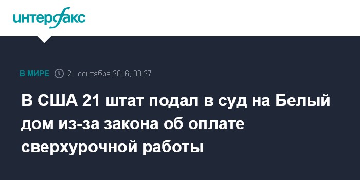 В США 21 штат подал в суд на Белый дом из-за закона об оплате сверхурочной работы