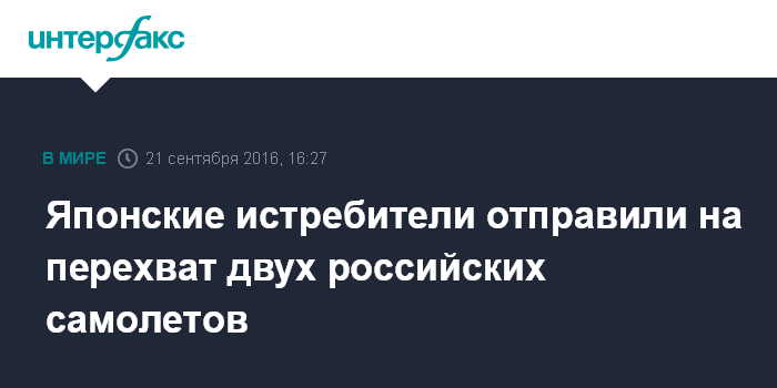 Москва. 21 сентября. INTERFAX.RU - Истребители Воздушных сил самообороны Японии в среду вылетали на перехват двух российских дальних противолодочных самолетов Ту-142, говорится в заявлении штаба сил самообороны Японии.