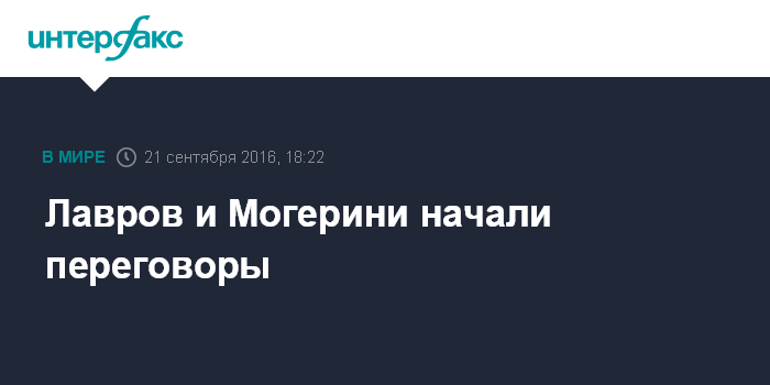 Москва. 21 сентября. INTERFAX.RU - Глава МИД России Сергей Лавров и верховный представитель ЕС по иностранным делам и политике безопасности Федерика Могерини проводят двустороннюю встречу на полях Генассамблеи ООН в Нью-Йорке.