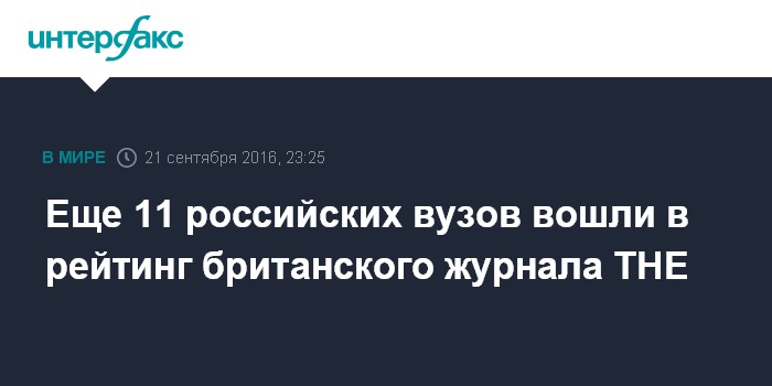 Москва. 21 сентября. INTERFAX.RU - Россия увеличила свое представительство в авторитетном международном рейтинге университетов World University Rankings 2016-2017 (WUR) британского издания Times Higher Education (THE) - с 13 в прошлом году до 24 в этом, сообщило Минобрнауки России.