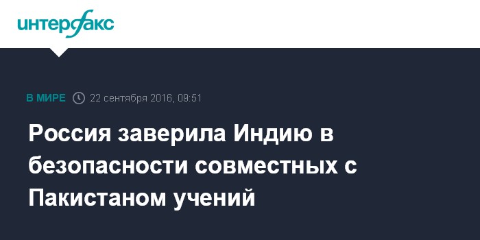 Россия заверила Индию в безопасности совместных с Пакистаном учений