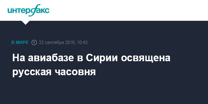 Москва. 22 сентября. INTERFAX.RU - По благословению патриарха Кирилла на сирийской авиабазе "Хмеймим", где базируется авиационная группа ВВС России, освятили часовню Георгия Победоносца, сообщается в четверг на официальном сайте Русской православной церкви.