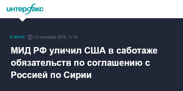 МИД РФ уличил США в саботаже обязательств по соглашению с Россией по Сирии