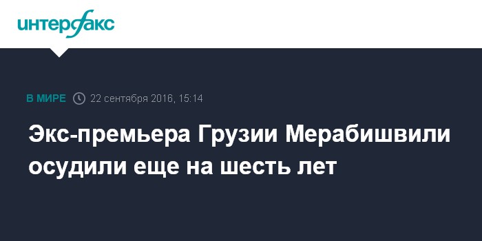 Москва. 22 сентября. INTERFAX.RU - Тбилисский городской суд в четверг признал экс-главу МВД и экс-премьера Грузии Вано Мерабишвили виновным по делу об избиении депутата парламента Валерия Гелашвили в 2005 году и приговорил его к шести годам и девяти месяцам лишения свободы.