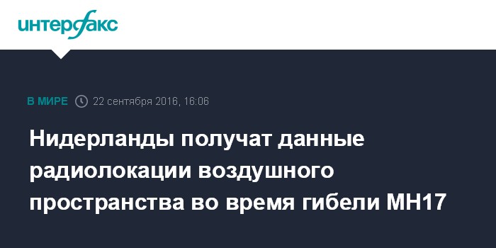 Нидерланды получат данные радиолокации воздушного пространства во время гибели МН17