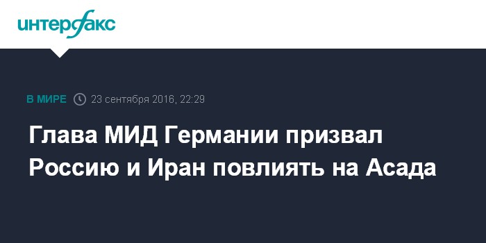 Москва. 23 сентября. INTERFAX.RU - Договоренность по перемирию в Сирии должна быть достигнута как можно скорее, так как ситуация остается очень серьезной, заявил в пятницу глава германского МИД Франк-Вальтер Штайнмайер.