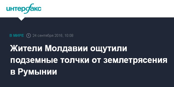 Москва. 24 сентября. INTERFAX.RU - Сильные подземные толчки ощущались в Молдавии из-за землетрясения в соседней Румынии. Как сообщил "Интерфаксу" директор Центра экспериментальной сейсмологии при Академии наук Молдавии Иван Илиеш, магнитуда толчков в разных регионах составила от 5,6 до 6,1.