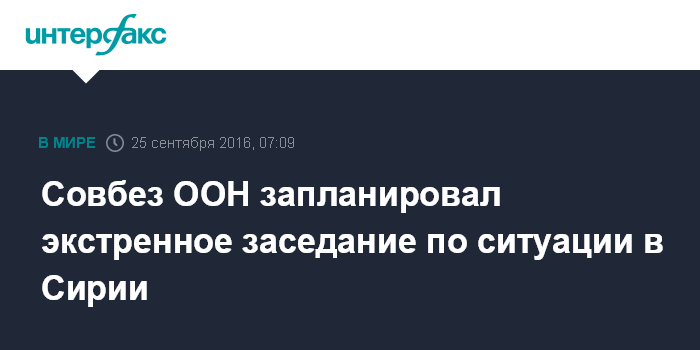 Москва. 25 сентября. INTERFAX.RU - В воскресенье, как ожидается, состоится экстренное заседание Совета Безопасности ООН по Сирии.