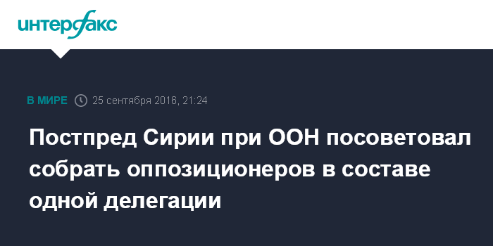 Постпред Сирии при ООН посоветовал собрать оппозиционеров в составе одной делегации