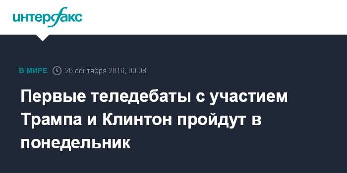 Первые теледебаты с участием Трампа и Клинтон пройдут в понедельник