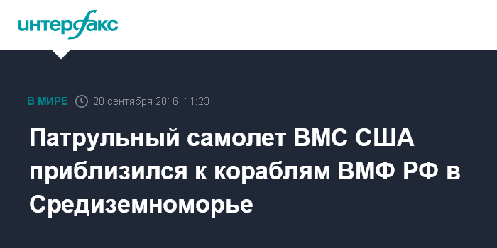 Патрульный самолет ВМС США приблизился к кораблям ВМФ РФ в Средиземноморье