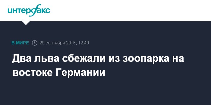 Москва. 29 сентября. INTERFAX.RU - В зоопарке немецкого города Лейпциг двум львам удалось перелезть через заградительную решетку и выбраться на волю, пишет в четверг газета Ишдв.