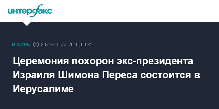 Церемония похорон экс-президента Израиля Шимона Переса состоится в Иерусалиме
