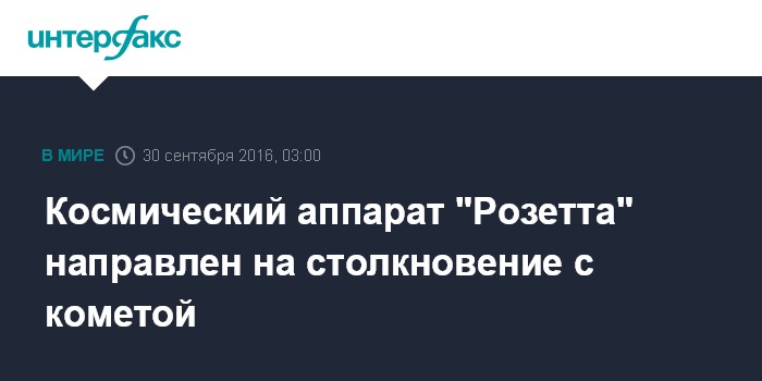 Как передает BBC, столкновение с кометой должно произойти днем 30 сентября, сообщает Европейское космическое агентство.