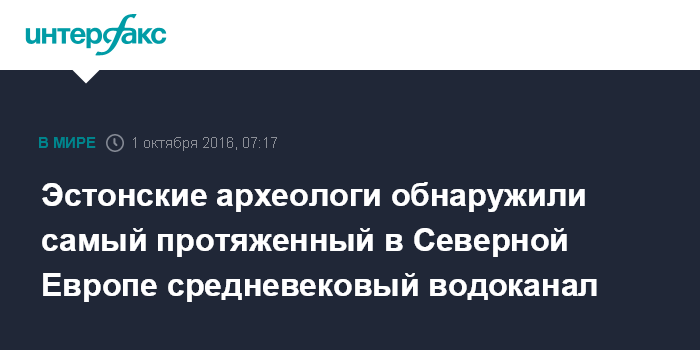 Москва. 1 октября. INTERFAX.RU - В ходе раскопок в Таллине обнаружен самый протяженный в Северных странах средневековый водоканал, который на протяжении почти 500 лет снабжал жителей города питьевой водой из озера Юлемисте.