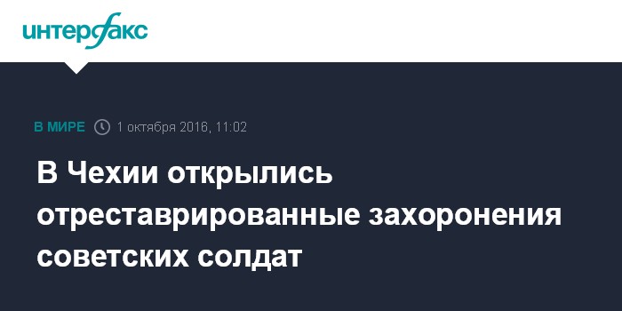 "В городе Визовице в Чехии состоялась торжественная передача администрации города двух отреставрированных на средства российской стороны захоронений красноармейцев: на центральном кладбище Визовице, а также могилы двух советских партизан на холме Дубрава близ города", - сообщил Попов журналистам в субботу.