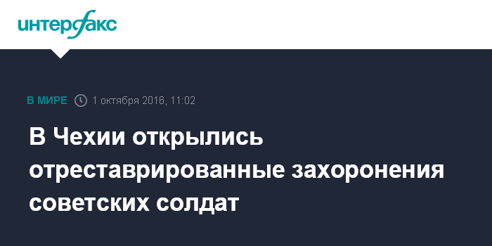 Москва. 1 октября. INTERFAX.RU - Отреставрированные захоронения советских воинов открылись в чешском городе Визовице, сообщил начальник управления Минобороны России по увековечению памяти погибших при защите Отечества генерал-майор Владимир Попов.