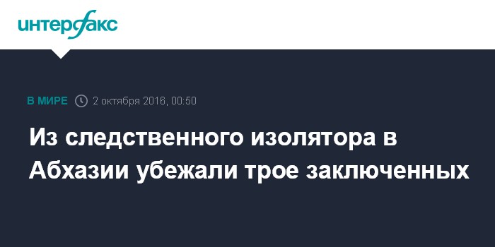 Москва. 2 октября. INTERFAX.RU - В Абхазии трое заключенных совершили побег из следственного изолятора, расположенного в поселке Дранда Гульрипшского района.