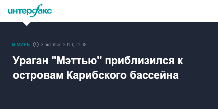 Ураган "Мэттью" приблизился к островам Карибского бассейна