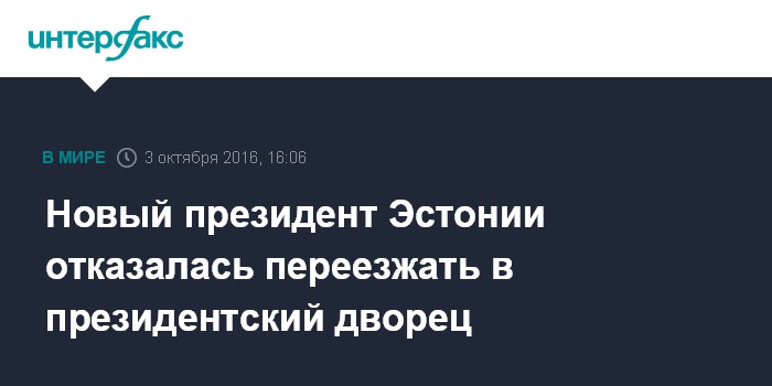 Новый президент Эстонии отказалась переезжать в президентский дворец