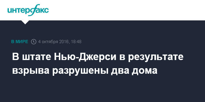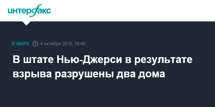 Москва. 4 октября. INTERFAX.RU - В американском городе Патерсон (штат Нью-Джерси) в результате взрыва были разрушены два жилых дома, сообщает CBS News.