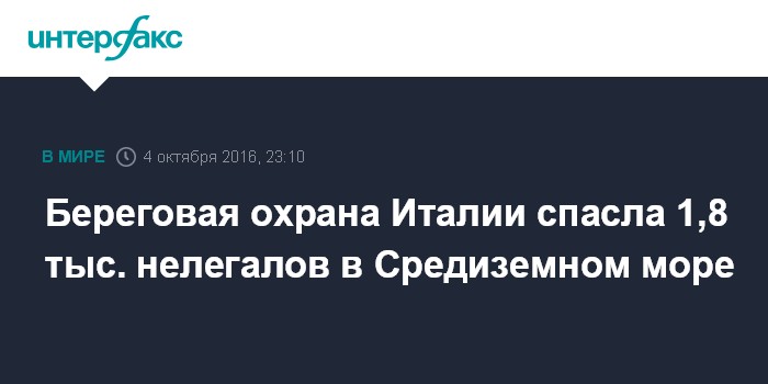 Москва. 4 октября. INTERFAX.RU - D итальянской береговой охране объявили, что за вторник спасли близ побережья Ливии 1,8 тыс. нелегальных иммигрантов.