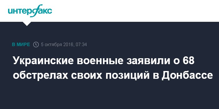 Москва. 5 октября. INTERFAX.RU - Позиции украинских военных в Донбассе в течение суток были обстреляны 68 раз, сообщает утром в среду пресс-центр силовой операции в Facebook.