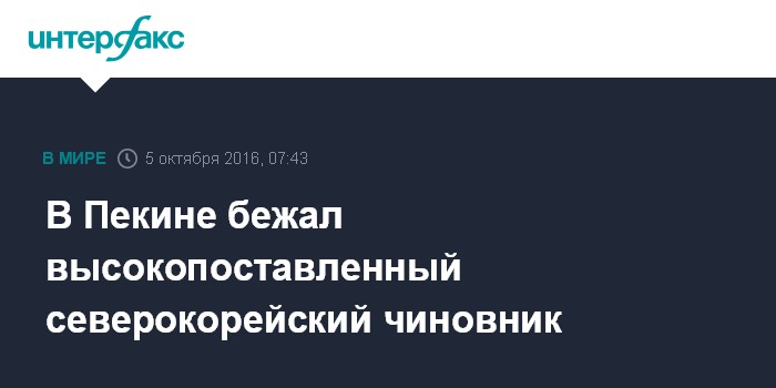 Москва. 5 октября. INTERFAX.RU - Высокопоставленный чиновник Северной Кореи, который постоянно находился в Пекине, бежал вместе с членами своей семьи, сообщили в среду южнокорейские СМИ.