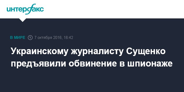 Москва. 7 октября. INTERFAX.RU - Следствие предъявило обвинение в шпионаже украинскому журналисту Роману Сущенко, задержанному в Москве, сообщил "Интерфаксу" его адвокат Марк Фейгин.