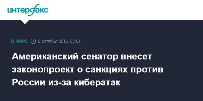 Американский сенатор внесет законопроект о санкциях против России из-за кибератак
