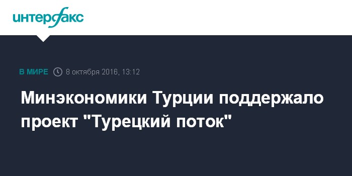 Минэкономики Турции поддержало проект "Турецкий поток"
