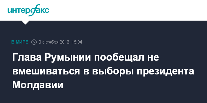 Москва. 8 октября. INTERFAX.RU - Европейский союз и Румыния обещали не вмешиваться в процесс выборов президента Молдавии, пишут румынские СМИ в субботу.