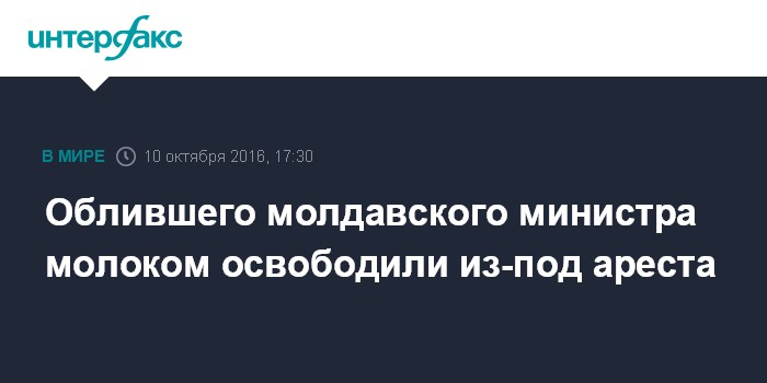 Москва. 10 октября. INTERFAX.RU - Апелляционная палата Кишинева (АПК) изменила меру пресечения хулигану, который вылил ведро молока на министра финансов Молдавии. В понедельник суд второй инстанции освободил Андрея Доникэ из-под ареста и перевел под судебный контроль - меру пресечения, схожую с подпиской о невыезде.