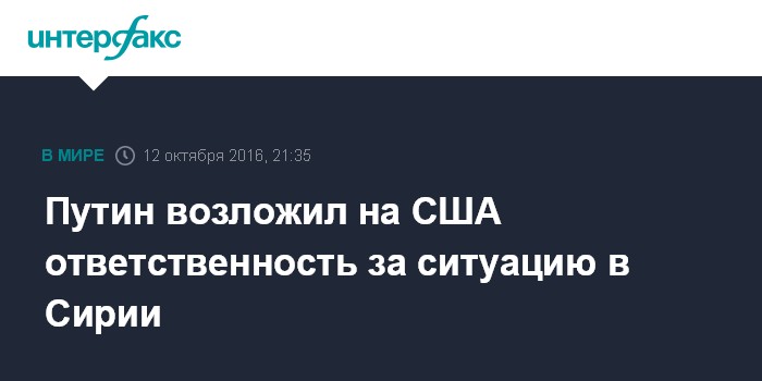 Москва. 12 октября. INTERFAX.RU - Президент РФ Владимир Путин заявил, что ответственность за ситуацию в Сирии в первую очередь несут США и их союзники.